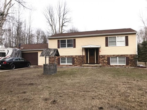 Beautifully updated Four Bedroom Two Bathroom Home on 5 Acres. Everything has been updated, including the kitchen and both full bathrooms. Both of the bathrooms and the kitchen feature new ceramic tile and the main level of the home has new hardwood flooring. Nice sized bedrooms. New composite deck that overlooks the backyard. The roof is only one year old. New solid wood front door and back patio door have been installed. Attached 2-car garage.