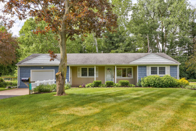 SOLD - Welcome home - This inviting ranch has all the curb appeal! Pull down the blacktop driveway to find a wide array of foliage with fresh mulch, a white picket fence, updated vinyl blue shaker siding and covered front porch. This property offers 3 large bedrooms, 1 full bathroom, a separate laundry/entry room with 1/2 bathroom, shower and plenty of storage. Good sized living room with Radiance direct vent gas stove and kitchen with oak cabinetry. Easy access to the front porch or back deck off of the living room. Freshly painted rear deck makes for a great spot to relax and enjoy the well-nurtured landscaping or watch the kids play. The property sits backed up to the woods where the picket fence continues and has two nice storage sheds. 1 1/2 Car attached garage offers plenty of space and room for storage, as well as overhead attic space. Some original hardwood floors in the kitchen and there is believed to be more throughout the house. Anderson windows, all appliances included, immediate possession, water softener, furnace and AC recently serviced. This clean home has been well maintained and is move in ready!