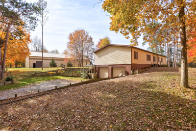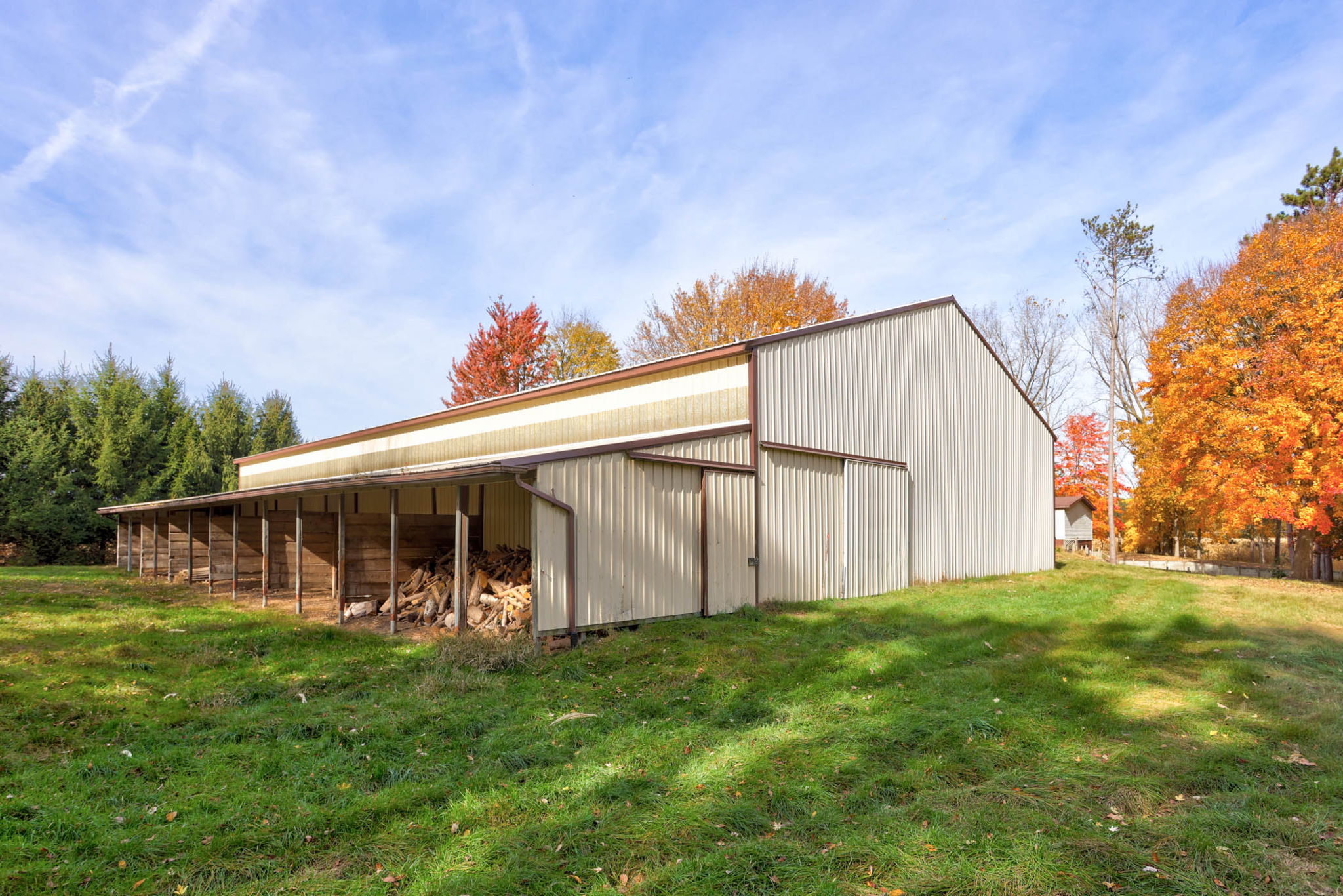 Prime location and real estate! 5+/- Acres partially wooded with park-like setting. 4 Bedrooms 3.5 Bathroom home on tall block basement and 2 car attached garage. Master Suite, Vinyl Windows, first floor laundry, and sunroom. Duel Fuel with Propane forced air heat, as well as a wood stove. Air Conditioning and gas fireplace in the living room. Water softener and appliances included. 60x104' Area with power and attached full length lean-to with stalls. Plus, an 88x48' 15-stall horse barn with power and water. Beautiful property with mature trees and plenty of space to roam. Great opportunity on a rare property! Driveway is an easement for access and property is to be split from the farm ground after a signed purchase agreement - survey available.