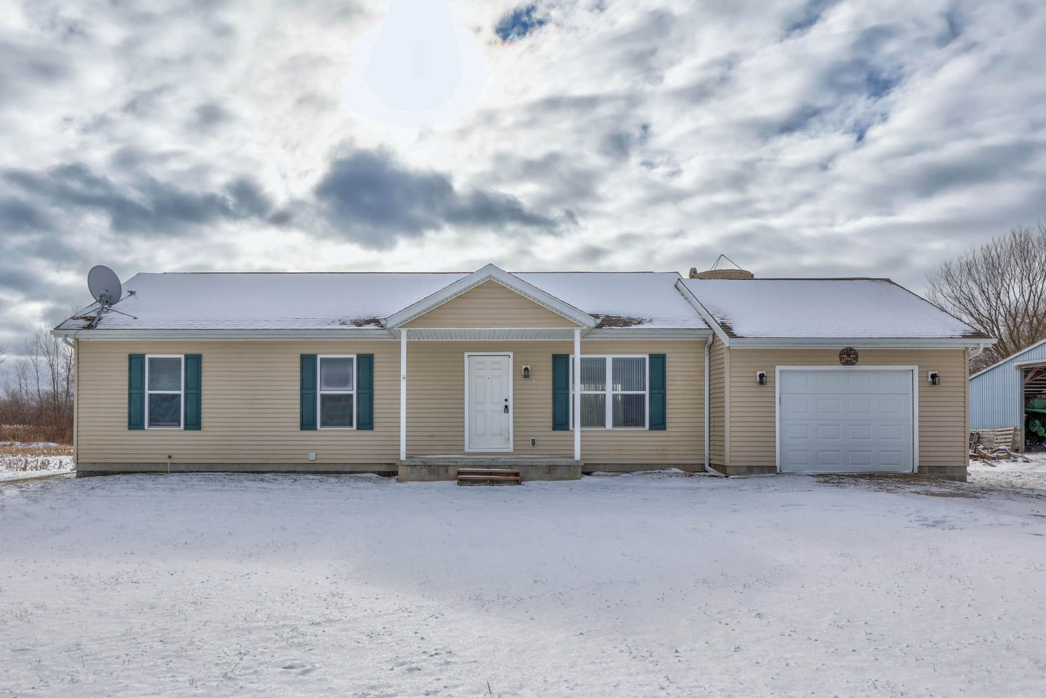 The cute country ranch you've been waiting for! Nestled on 2.5 acres this property has a ton of history with a newer built home in 2016. Walk in to an open floor plan with updated kitchen and island seating. Kitchen appliances included. Sliding glass door with direct access to the back yard off of the dining room. The white 6-panel doors throughout have charming appeal. 3 good-sized bedrooms including a master suite. 2 full bathrooms with updated finishes. First floor separate laundry closet. Attached one car garage has a ramp for accessibility. Great yard on a large lot with plenty of space, as well as a wood line giving privacy. Large 45x60 Pole Barn has two finished sides and sliding doors. Needs some TLC but provides great covered storage and finished potential. Old silo and barn foundations show the property's character. Professionally cleaned, freshly painted and move in ready!