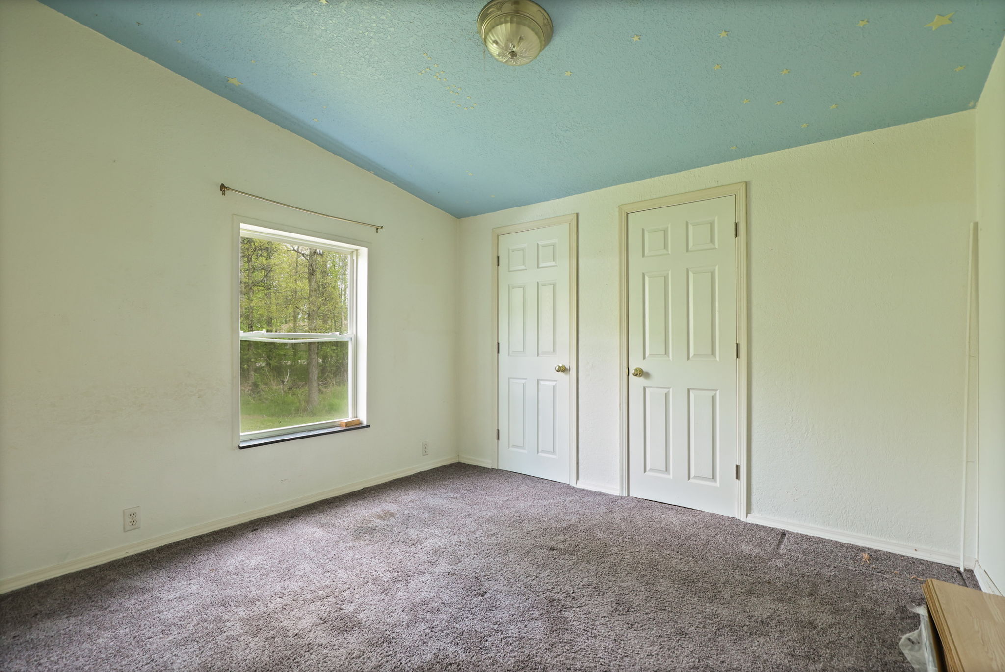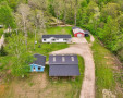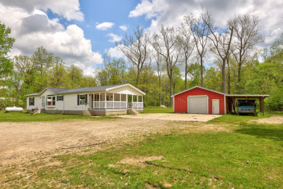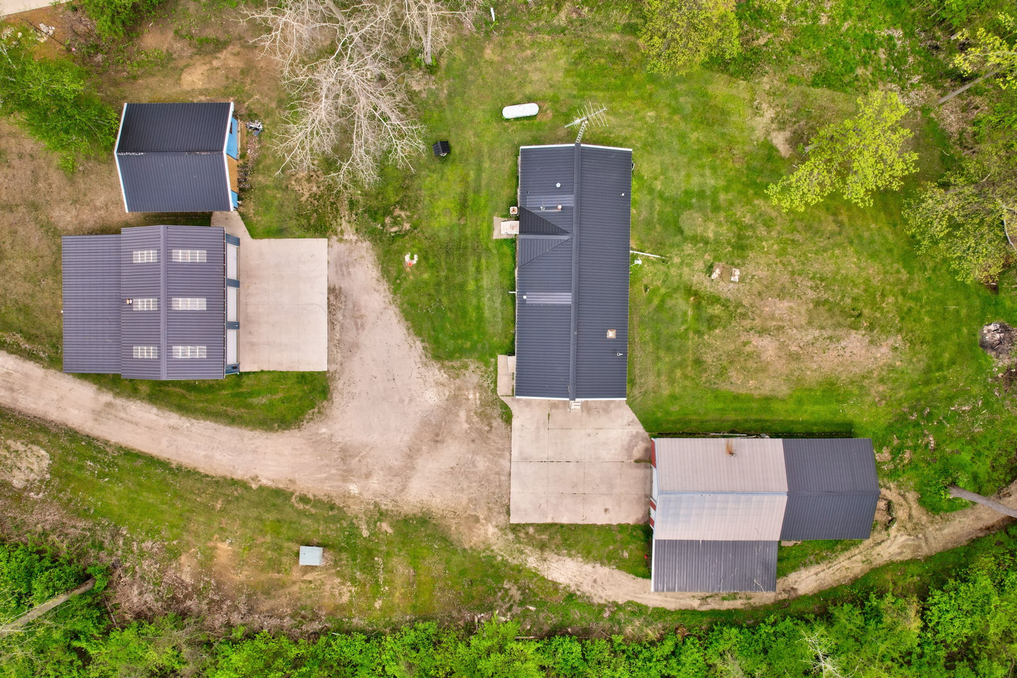 If seclusion and room for toys is what you've been looking for, this is the listing for you! Tucked away on a quiet wooded setting this property sits on 2.5 acres, has a pond and multiple outbuildings ready to be filled! The home has an open floor plan which includes 3 bedrooms, with a master suite and 2 full bathrooms. Multiple heat sources, a newer water heater and updated metal roofs provide functionality. Kitchen has ample storage, included appliances and panty space, as well as wood paneling that give it rustic charm fitting to the setting. Sliding glass door gives direct access from the dining area to the covered porch where you can sit and enjoy the peace and quiet. Outside you'll find the detached 32x24 heated garage with 24x24 lean to, 32x14 lean to and concrete that is set up for a 2-post lift. Up front is the 36x24 Pole Barn with Three 9x8 overhead doors, 2-post lift ready and a 36x18 lean to. As well as another 23x23 insulated versatile-use building with an overhead door opening that was originally used as a salon and then converted to storage space. This property has so much to offer - call today for your personal showing!